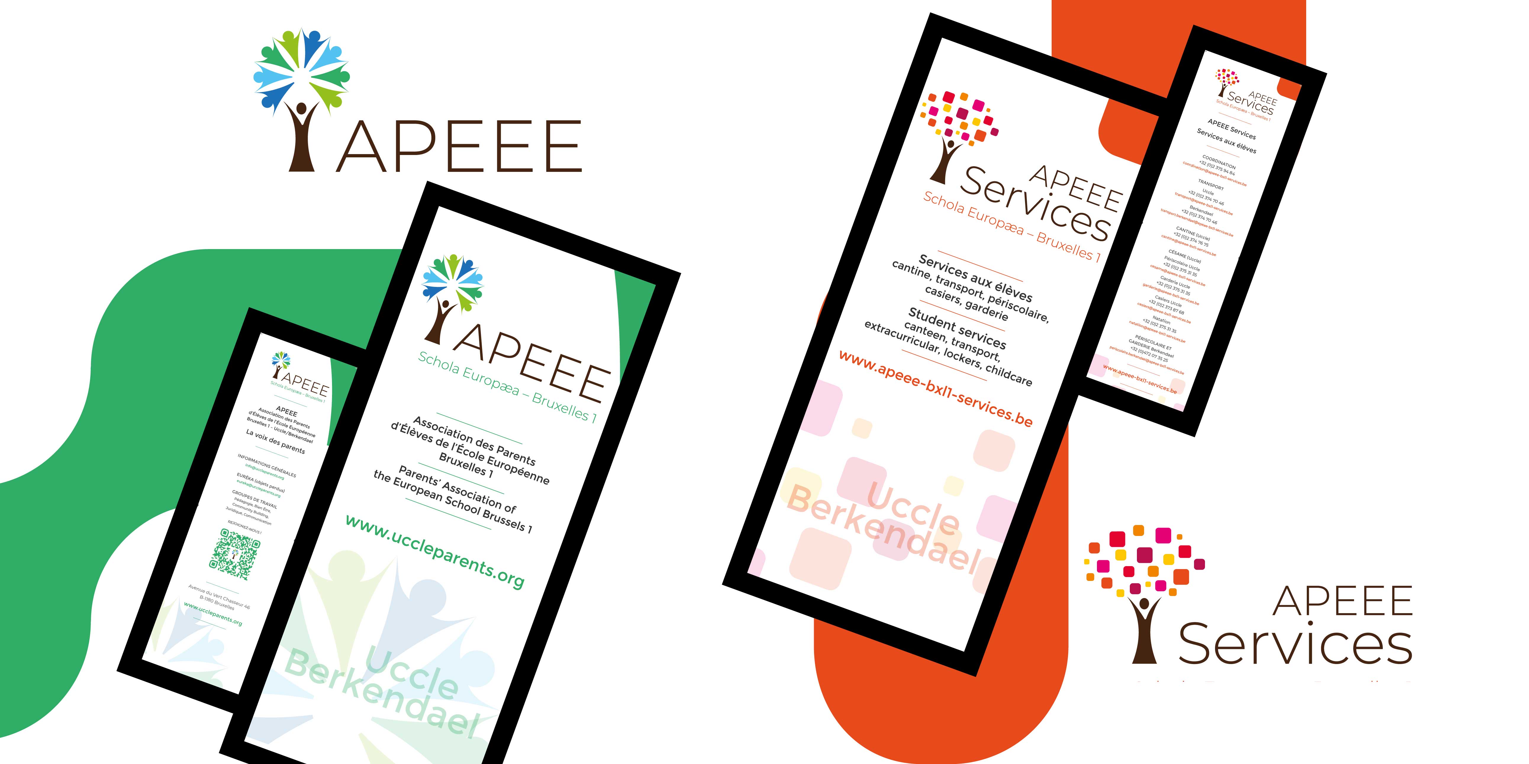 The goal of this new branding was to instantly distinguish APEEE from APEEE Services through dedicated colours/logo icon/baseline. In parallel, it was important to keep some details that belong to both logos. This is the reason why the ‘tree trunk’ and the typeface are common to both logos. The result is two different logo designs, one for APEEE, and one for APEEE Services.